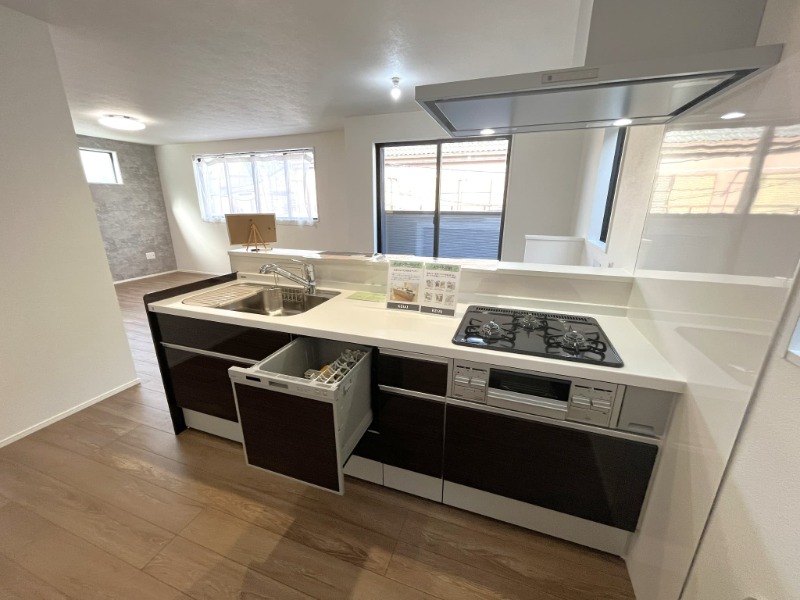 | 設備・条件 | トイレ2か所/駐車場あり/ビルトインガレージ/TVモニタ付インターホン/リビングダイニング15畳以上/対面キッチン/カウンターキッチン/食器洗い乾燥機/コンロ3口以上/浴室乾燥機あり/バス・トイレ別/洗濯機置き場/独立洗面台/シャワートイレ/バルコニー/クローゼットシューズボックス/ | ||