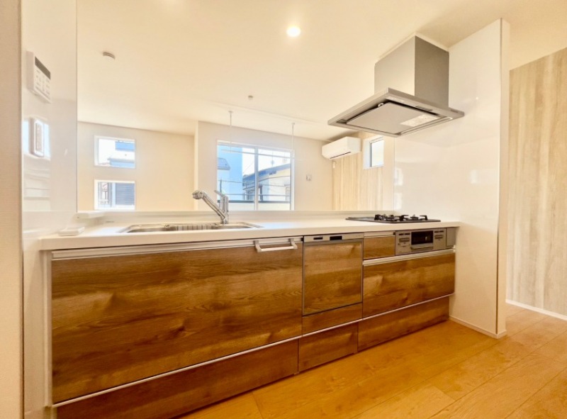 | 設備・条件 | 耐震構造/設計住宅性能評価付き/住宅性能評価付き/南道路/トイレ2か所/駐車場あり/24時間換気システム/TVモニタ付インターホン/リビングダイニング15畳以上/リビングに階段あり/対面キッチン/システムキッチン/食器洗い乾燥機/浴室乾燥機あり/追い焚き/バス・トイレ別/洗濯機置き場/独立洗面台/シャワートイレ/シャンプードレッサー/バルコニー/ウォークインクローゼット/床下収納/ | ||
