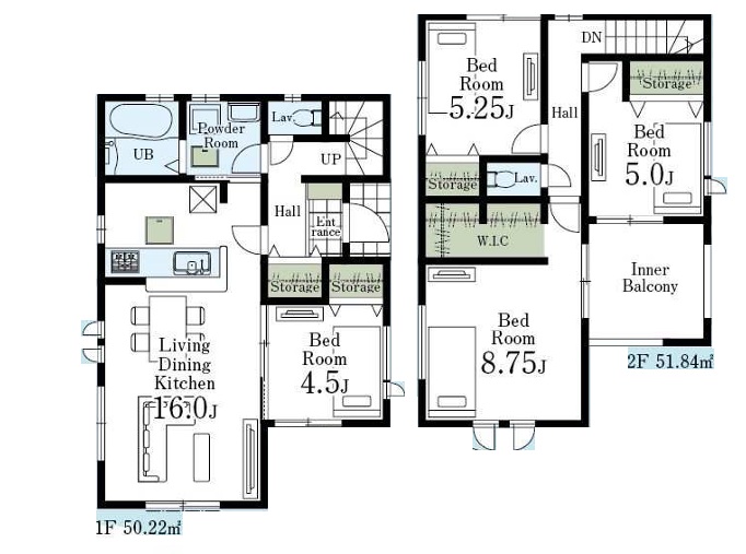 | 間取り/間取り詳細 | 4LDK / LDK16.0帖 / 洋室4.5帖 / 洋室8.75帖 / 洋室5.25帖 / 洋室5.0帖 | ||