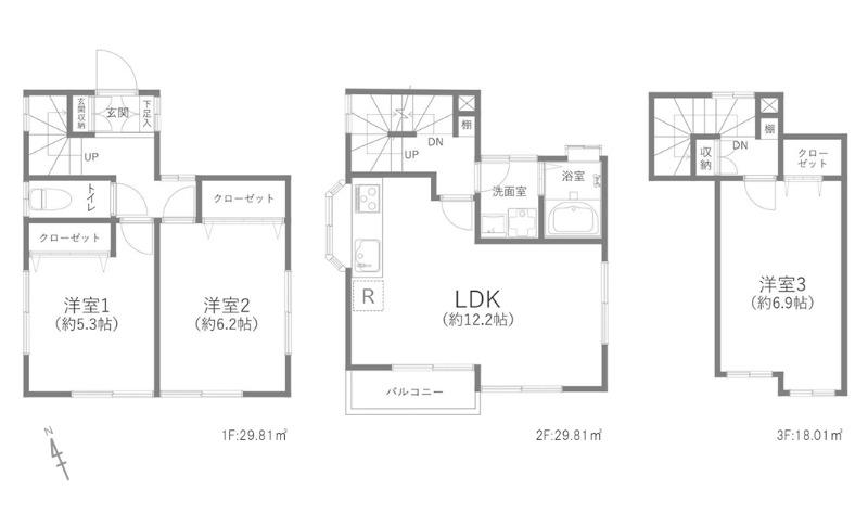間取り/間取り詳細 3LDK / 洋室6.2帖 / 洋室5.3帖 / LDK12.2帖 / 洋室6.9帖