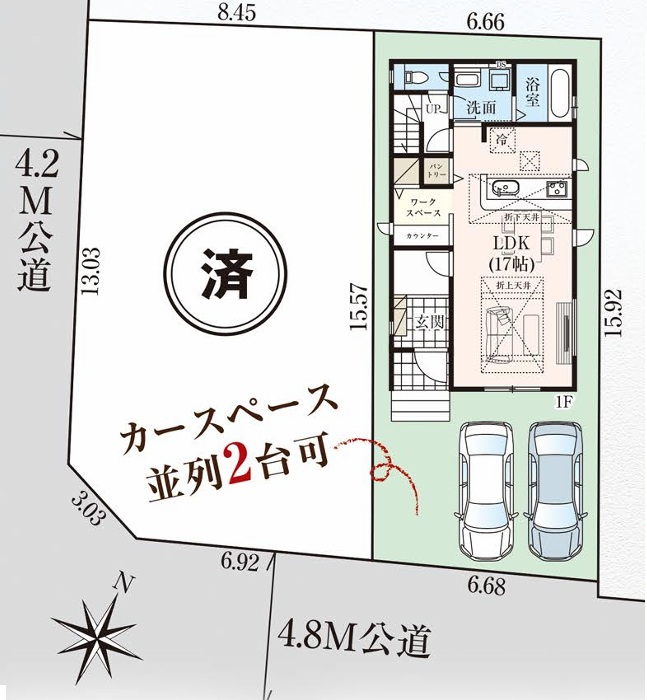 | 建物面積 | 97.3㎡ | 土地面積 | 104.9㎡ |