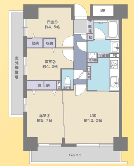 | 間取り/間取り詳細 | 3LDK LDK12.0帖 / 洋室5.7帖 / 洋室4.5帖 / 洋室4.2帖 | 築年月 | 1995年1月 |