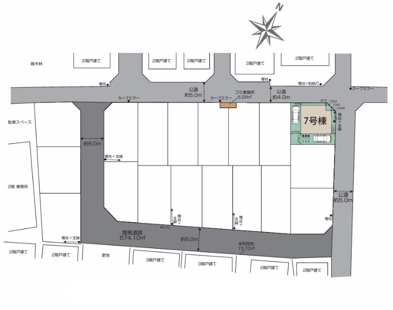 | 備考・特記事項 | 都市再生特別措置法。水道負担金→買主負担、上下水・都市ガス引込→売主負担。未利用地15.70㎡の内持分1/18、ゴミ集積所6.29㎡の内持分1/18。ダストBOX設置予定。開発道路は三芳町へ帰属。開発面積2,809.29㎡。電柱及び支線、トレンチ管、引込み管の位置変更はお受けできません。TVアンテナ(電波障害等によるケーブルTV、共聴アンテナ)の申込みはお客様負担となります。電気の供給の為、敷地内に電柱及び支線が入る場合があります。図面と現況の相違がある場合は現況優先にてご了承願います。司法書士、土地家屋調査士は売主指定とさせていただきます。 | ||