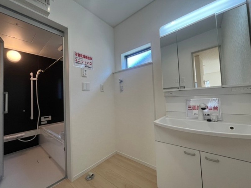 設備・条件 平坦地/制震構造/住宅性能評価付き/南道路/トイレ2か所/駐車場2台以上/24時間換気システム/TVモニタ付インターホン/防犯カメラ/人感センサー/照明器具付き/リビングダイニング15畳以上/カウンターキッチン/システムキッチン/給湯/コンロ3口以上/浴室乾燥機あり/バス・トイレ別/洗濯機置き場/独立洗面台/シャワートイレ/シャンプードレッサー/バルコニー/床下収納/クローゼットシューズボックス/フローリング/フラット35利用可/